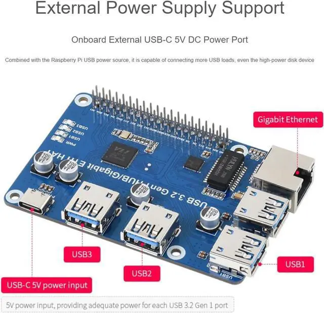 Onboard external USB-C 5V DC power port, ensures more stable power supply
