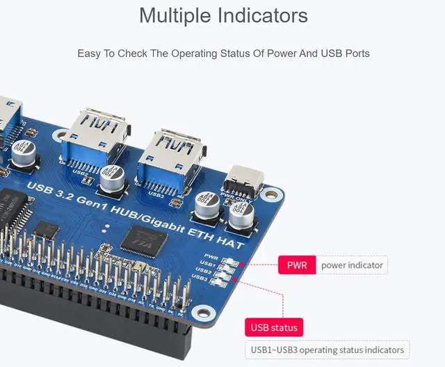 1x power indicator and 3x USB port indicators, easy to check the operating status