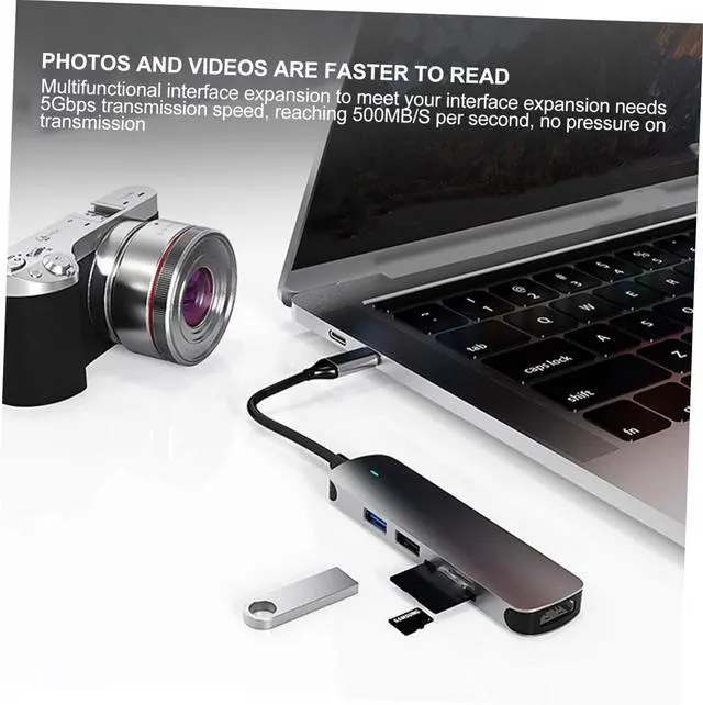 5-in-1 adapter dongle: small size, lightweight, you can carry this USB hub everywhere.