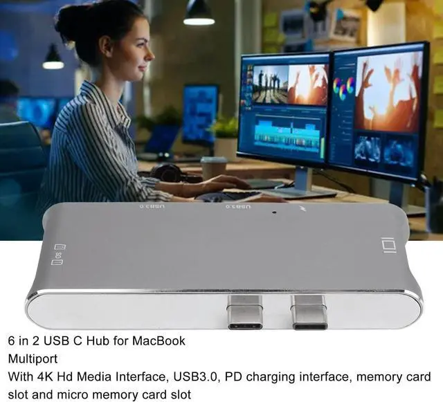 Compatibility: The 6 in 2 USB C docking hub is tailored for , precisely matched to the computer body and seamlessly connected.
