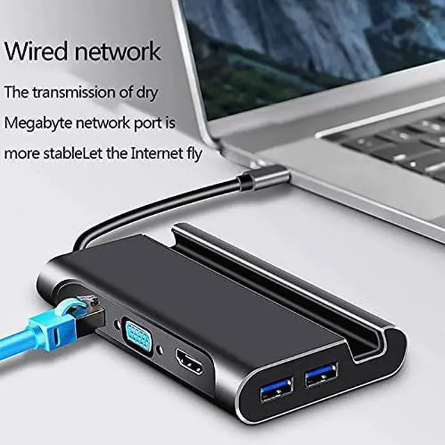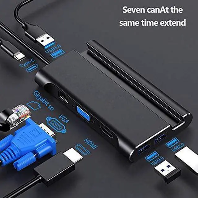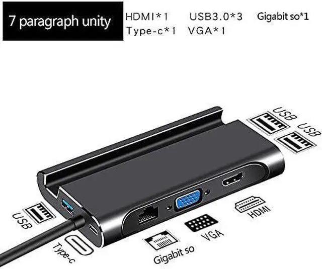7 in 1: type c to HD /USB3.0*3 /PD /LAN /VGA (main picture type) Carry card slot for easy viewing of videos. Type C 7-in-1 Docking Station HD/VGA Multi-Port Expansion Dock with Network Card Adapter USB C Adapter For Xiao mi notebook y viewing of videos. Adopt thick tinned copper wire core + aluminum foil layer + braided mesh to effectively shield external signal internce and ensure efficient signal transmission. PD fast charging, so that the computer is fully charged at all times, Type-C fast charging interface. Gigabit network card, wired network is faster and more stable, the game is not pitted against teammates. Two HDMI+VGA interfaces can be connected to monitors, TVs, projectors and other devices to enjoy cinema-level video experience. Mobile phone card slot design, Type-C smart docking station. package 1 x Industrial USB Hub Note: 1. Please Allow 1-3cm Differs Due To Manual Measurement. 2. Light shooting and difnt displays may cause the color of the item in the picture a little difnt from the real thing. Please refer to the actual product.Thanks For Your Understanding.