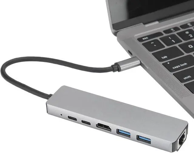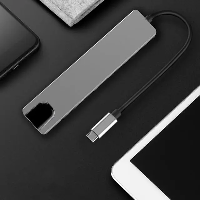 UNIVERSAL USB C COMPATIBILITY: 6-In-1 docking station equipped with a USB C male port, this hub ensures compatibility with USB3.0/3.1 specification, enhancing connectivity across a variety of devices.