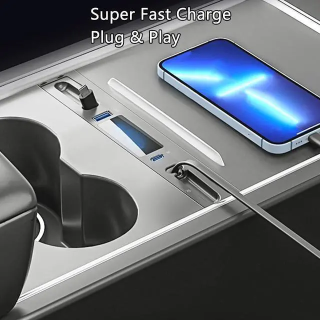 27W Fast Charging & Compatible ProtocolThe centre console docking station is Compatible with Tesla Model 3/Y 2021-2023.Equipped with 27W fast charging interface for stable charging, 27W high power output, 3 times faster than ordinary chargers, boost charging more efficiently, charging for half an hour, a full day's range, high-speed data transmission, to meet needs of a variety of devices. Support PD fast charging, QC3.0 and other mainstream fast charging protocols.