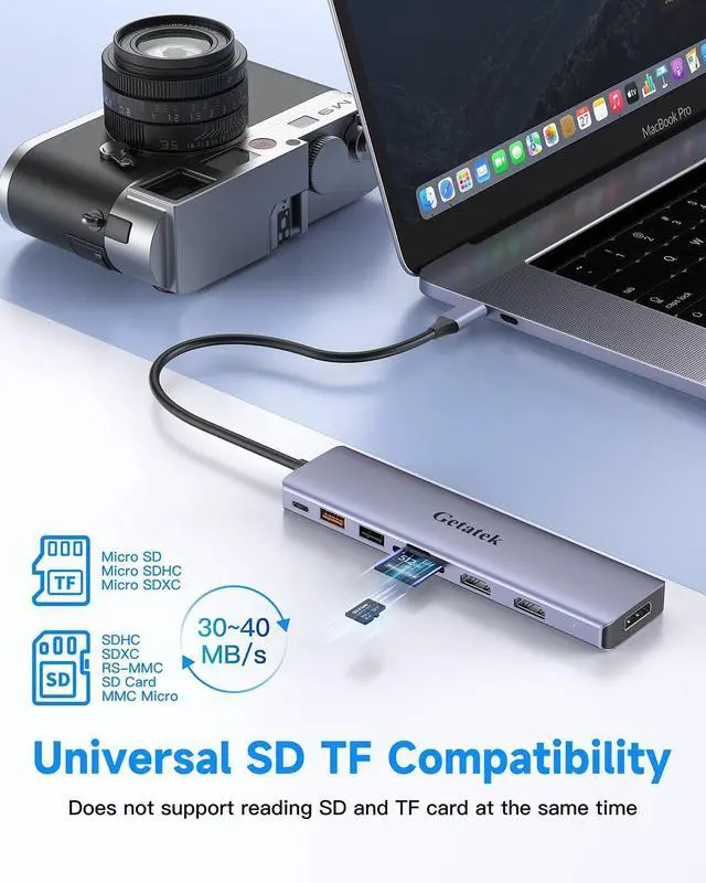 USB A 3.2 & SD/TF Fast Data Transfer - USB 3.2 A up to 10Gbps and backwards compatible with USB-A 2.0/USB-A 1.1 and provide stable connection.USB 2.0 up to 480Mbps(best for keyboard or mouse). SD/TF up to 200Mbps, allows you tranfer files in seconds from your usb flash driver, usb/usb c hard disks.