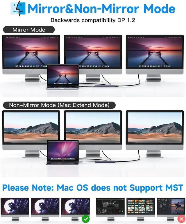 USB C Hub 3 Monitors - This usb c docking station only Windows System support Mirror & Extend Mode, HDMI port support up to 4K@60Hz. Display port up to 4K@60Hz. For Extend mode, MAC OS can Only Extend One Monitor (4K@60Hz).