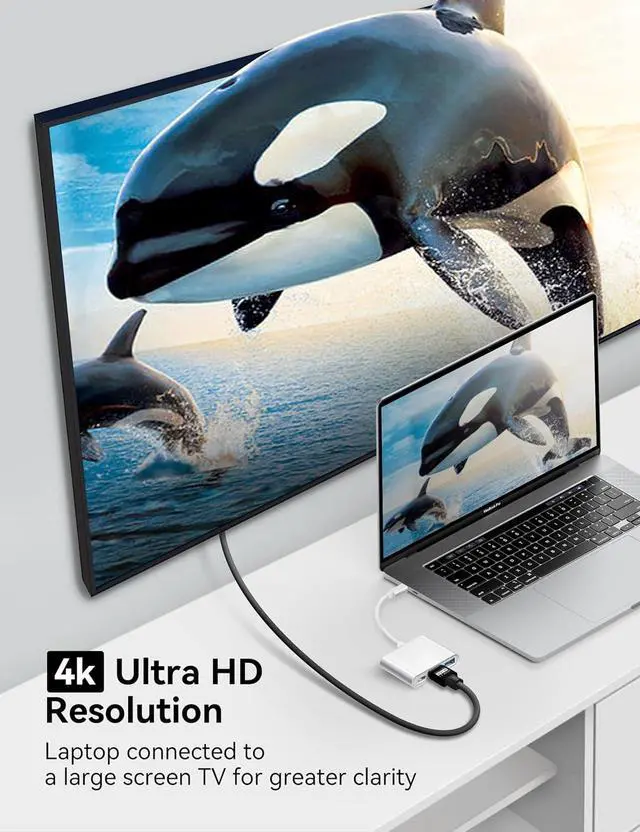 HD 4K HDMIThe maximum resolution is 4 K@30 Hz. You can experience real visual effects through the USB-C to HDMI port. This HDMI adapter for mac book air can mirror or extend the screen of your laptop/phone/tablet to 4 K Ultra HD or Full HD 1080 p video directly to HDTVs, monitors, projectors etc. Provides vibrant, clear, no wobbling of video and image.