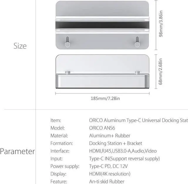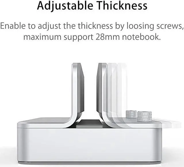 Adjust the Thickness Freely,Can adjust the thickness of the storage docking station from one side of it, loosen two screws to move the aluminum box. Support notebook with thickness of 28mm. There is non-slip rubber on two sides and bottom of the aluminum block to avoid accidental scratches.