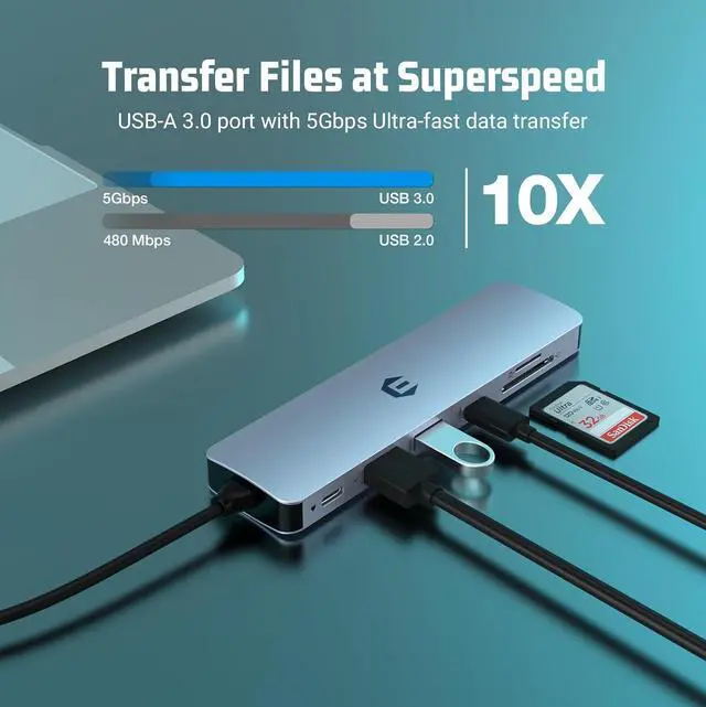 Super Speed Data Transfer With USB 3.0 Type A and Type C ports for lightning fast 5Gbps data transfer. SD and Micro SD card readers give quick access to files on memory cards.