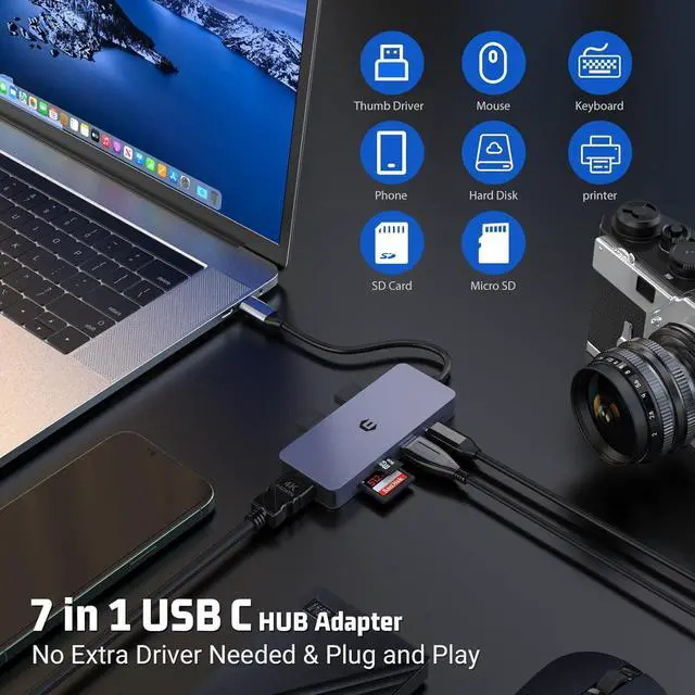 USB C Card Reader: The USB hub built-in SD/TF dock provides easy access to your memory card, transferring hundreds of photos to your laptop in seconds with a top speed of 104MB/s and no additional card reader or adapter required.