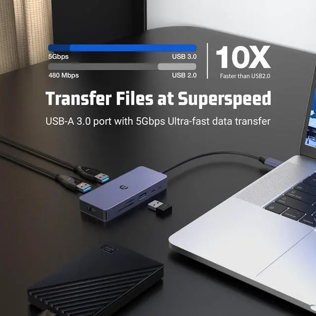 Ultra-high Speed Data Transfer: Up to 5gbps transfer speed and 5V/1.5A charging speed through 3 USB 3.0 ports, 10 times faster than USB 2.0, it can transfer a high-definition movie in seconds.
