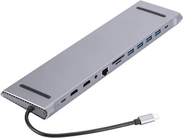 Selected Material: USB C Hub Docking Station Our 12 in 1 USB C Hub features high-grade durable aluminum alloy + ABS materials for fast heat dissipation, ensuring superior performance and reliability for all your device connections.