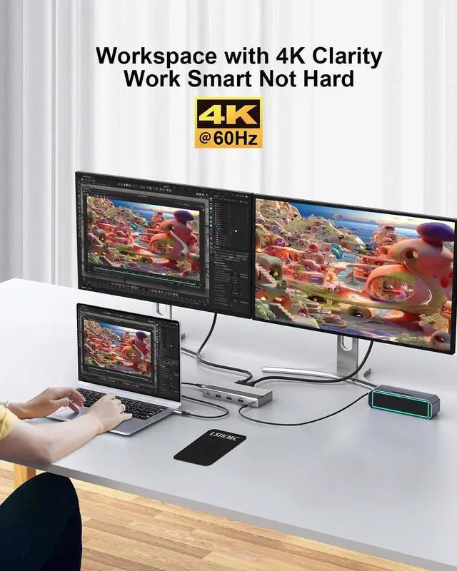 Dual 4K Monitor Multitasking Engine: Achieve 4K@144Hz ultra-smooth gaming via single DisplayPort, or dual HDMI monitors at 4K@60Hz for office productivity. This Laptop Docking Station Dual Monitor streamlines workflows for designers/coders/traders.