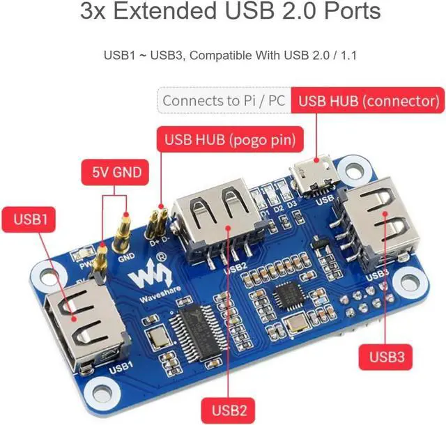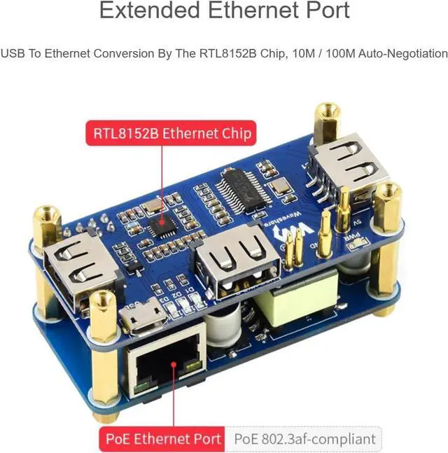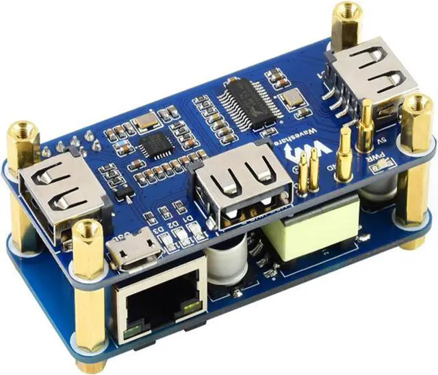 The PoE/ETH/USB HUB HAT is a PoE (Power over Ethernet) USB HUB HAT compatible with Raspberry Pi Zero.