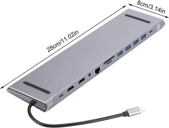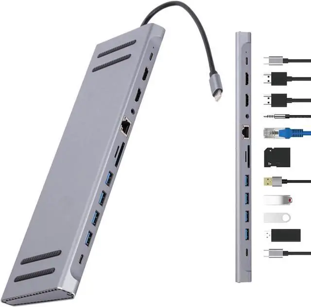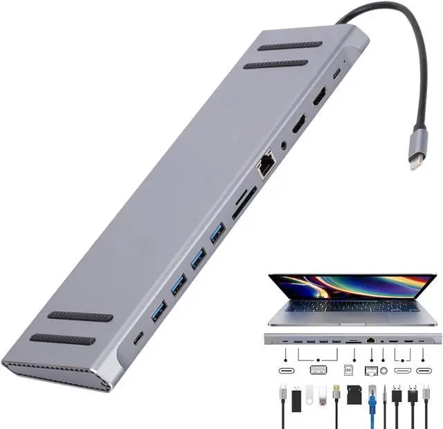 Durable and Efficient: With high-grade durable aluminum alloy + ABS materials for fast heat dissipation, this 12 in 1 USB C hub ensures stable performance and reliable connectivity