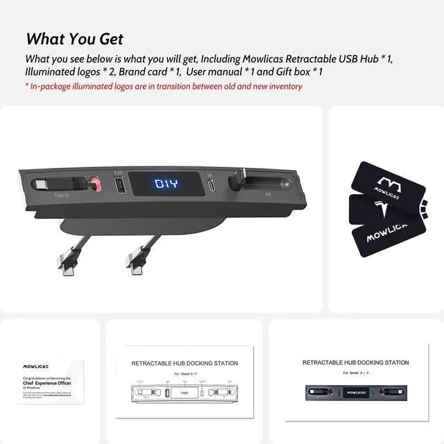 OEM look and Fits PerfectlyBulid-in designed make it perfectly integrated with your center console, is necessary accessories for Tesla Model Y 2024/2023/2022/2021&Model 3 2023/2022/2021 , retractable cables design can easy cables management, upgrade your driving experience