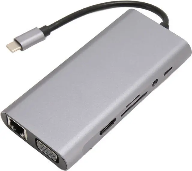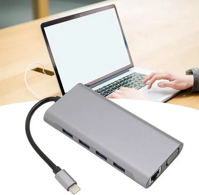 11 IN 1 USB C HUB: Expand your device with a USB C port for 4K at 30Hz HD multimedia interface port, VGA port, 4 x USB3.0 ports, RJ45 Gigabit port, USB C data port, PD charging port, storage card memory card reader, and 3.5mm sound port.