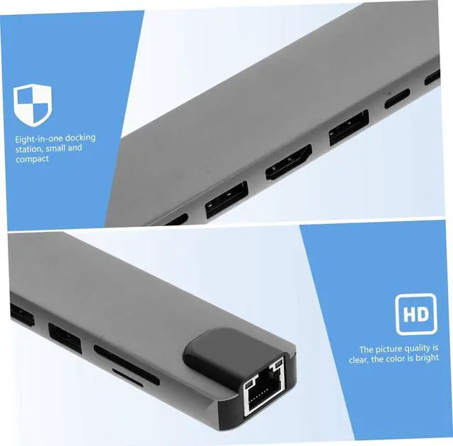 Docking station dual monitor: compact size makes it portable and convenient for you to carry. type hub USB hub dock station 8- in- 1 phone converter