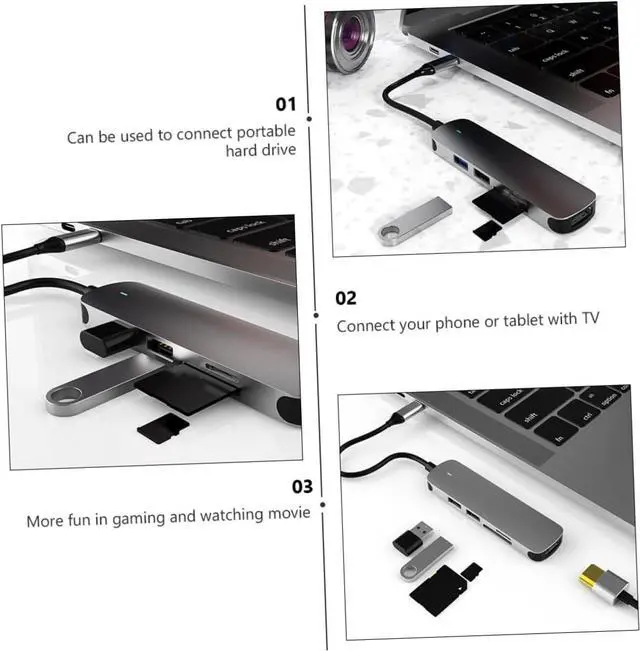 • 5 port USB hub:connect your laptop or phone with tv, projector, monitor,usb hub for laptop