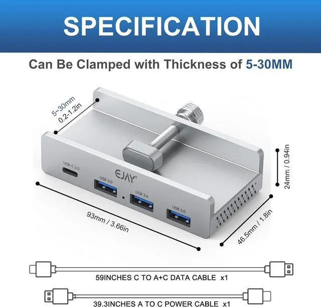 • High Speed Data Transfer : Clamp hub is equipped with USB 3.0 high speed interface, which is 10x faster data transmission speed than USB2