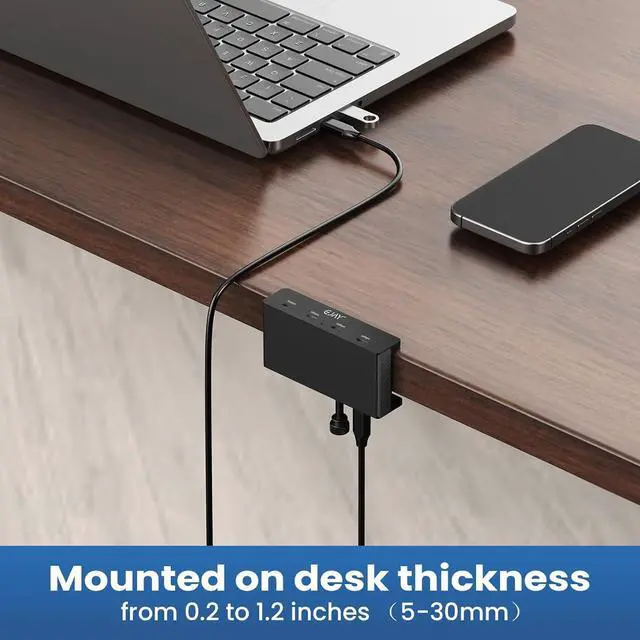 Innovation Design-No More Sliding: Adajustable Clamp Hub,Replace traditional USB Hub which with the disadvantages of sliding everywhere,hard to plug and unplug and take up space,the new design Hub can fit the thickness from 0.2 to 1.2 inches (5-30mm)extended the USB fuction from host to desk, install the hub where you need at a convenient place,enjoy the stable data transmission more easier and no need to squat down the table to connect every device
