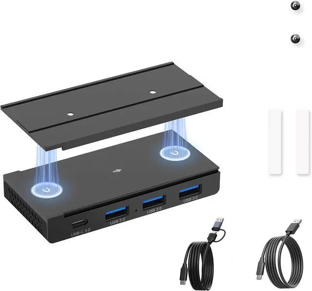 Magnetic 4-Port USB Hub: Expand your connectivity with three USB 3.0 ports and one USB-C port. The built-in magnets securely attach the hub to any metal surface, preventing slips or shifts during use