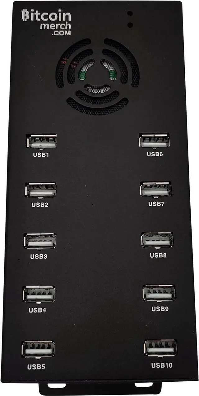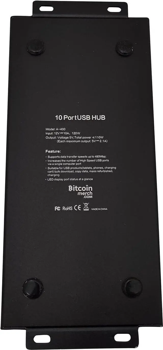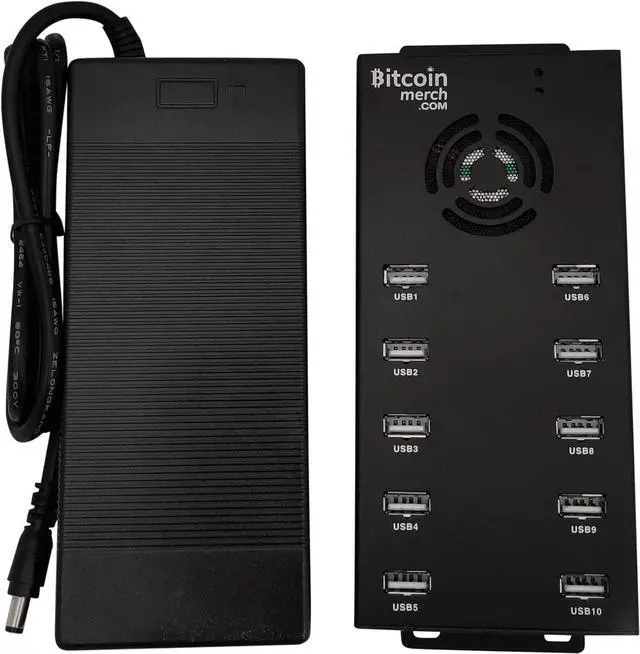 BitcoinMerch.com - 10 Port USB Hub 120W Powered USB 2.0 Charging Hub 12V 10A PSU for NewpPac, Antminer, Moonlander