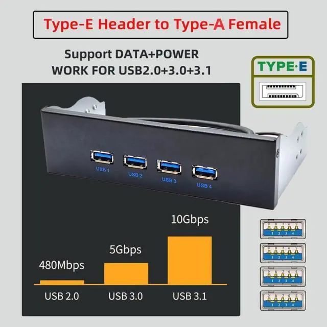 2) Wide Compatibility: Fully compatible with Windows 11/10/8.1/8/7/Vista/XP. Transform your 5.25" CD drive space into a versatile hub featuring 4 USB 3.1 Gen 2 USB-A ports.Enhance the scalability of your desktop computer to meet a variety of needs.