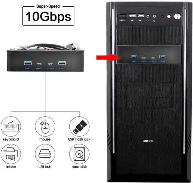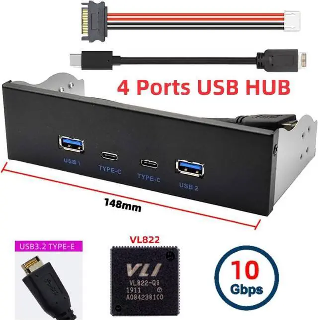 2) Wide Compatibility: Fully compatible with Windows 11/10/8.1/8/7/Vista/XP. Transform your 5.25" CD drive space into a versatile hub featuring 4 USB 3.1 Gen 2 USB ports.Enhance the scalability of your desktop computer to meet a variety of needs.
