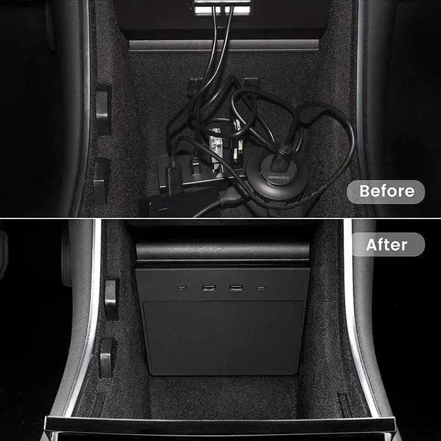 Easy to Install -- Anyone can install in minutes. Perfect intergration with the Tesla console,make it clean and tidy, no additional USB splitters, hubs, USB-A to USB-C converters needed.