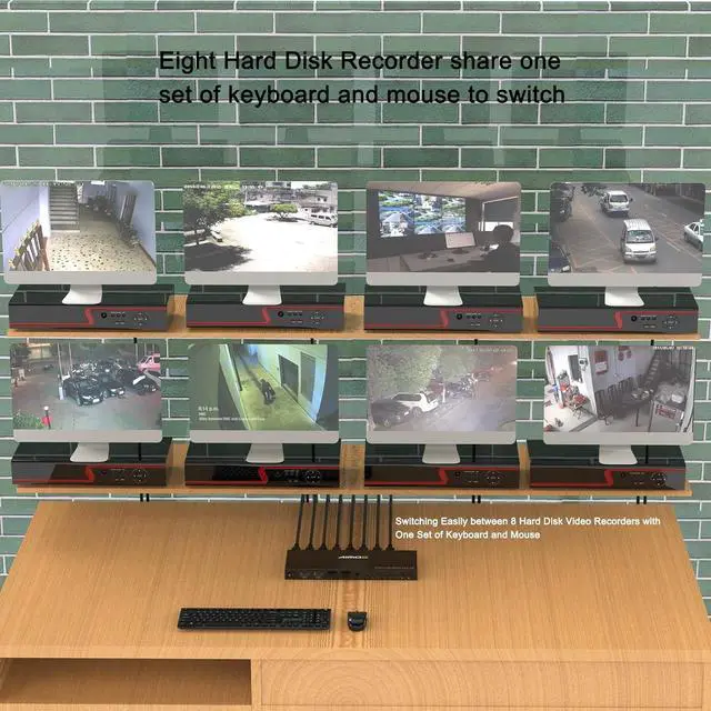 Just connect the keyboard and mouse to the USB switch sharer, then one set keyboard and mouse can control 8 hosts. This USB switch selector box can support for wireless mouse and keyboards.