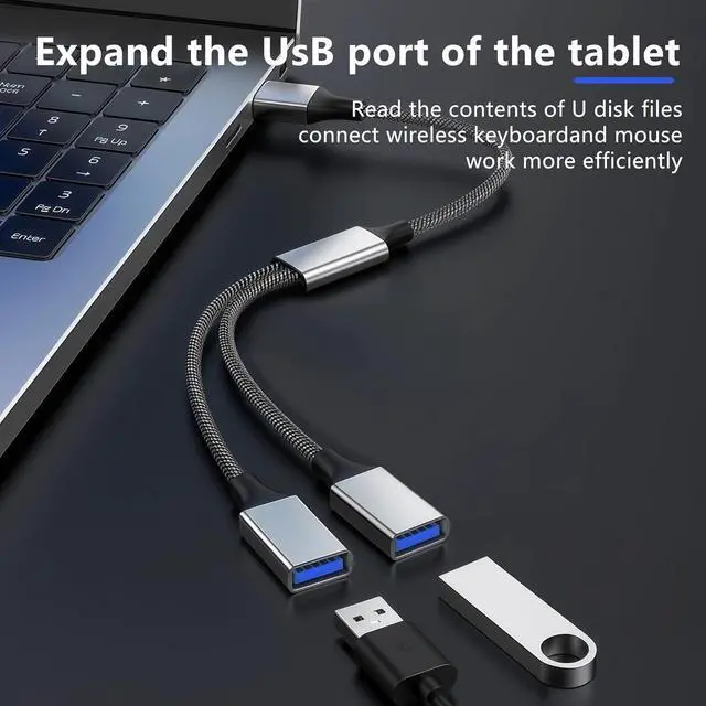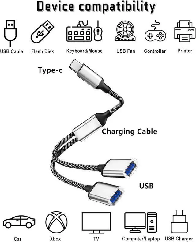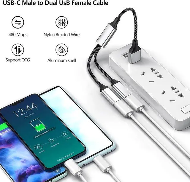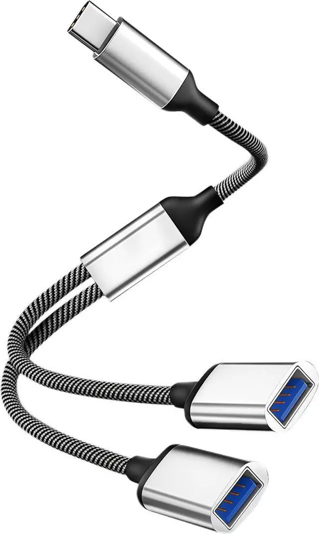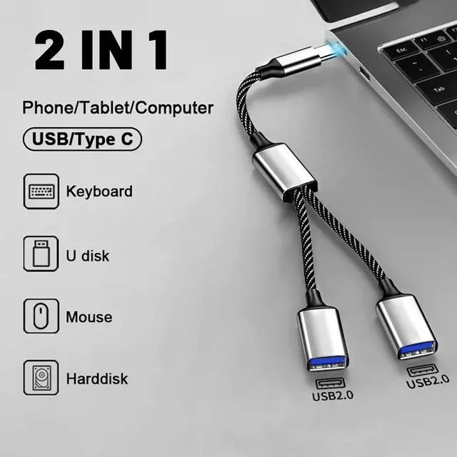 Expand Your USB-C Port Simply & Effectively. This sleek silver aluminum hub instantly adds two USB 2.0 ports (480 Mbps) to any USB-C device. Connect essentials like flash drives, keyboards, mice, printers, chargers, and more all at once. Transfer data quickly (up to 60MB/s) and charge devices (up to 5V/2A). Works perfectly with iPhones (15/16), iPads, Galaxy phones, Android devices, MacBooks (M1/M2/M3), Windows PCs, PS5, and car chargers. Durable aluminum build, compact size, and true plug-and-play no setup needed. Your straightforward solution for more connections at home, work, or on the road.