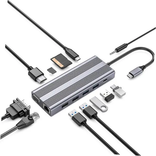 12-in-1 hub adapter:saves your desk space, the handy and compact design offers an excellent way to fast access to your USB devices anywhere,Multi-Port USB Hub