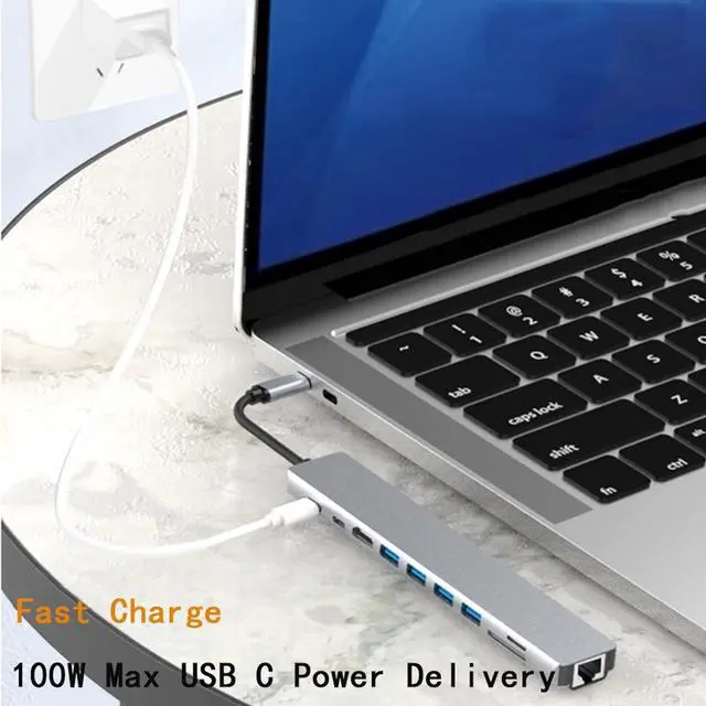 Extending your laptop with multi-ports,with 4xUSB 3.0 ports, 1xUSB-C PD 100W,1x 4K interface ,1 Rj45 100Mbps, card reader slots, Type C fast charging and for superior data transfer.