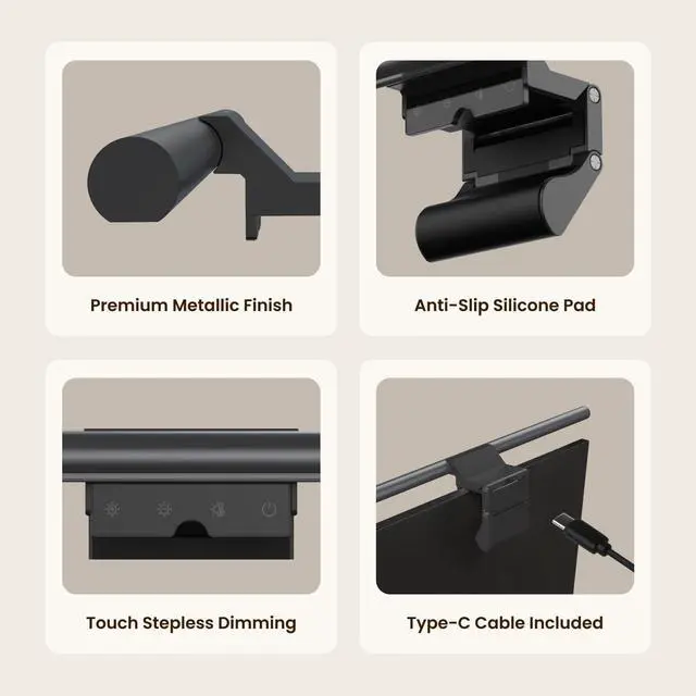 Effortless Install, Space-Saving BrillianceYEELIGHT's Monitor Light Bar offers a cutting-edge lighting solution with easy installation and space-saving design. Its retractable clip adapts to monitors from 0.3" to 1.4" thick, compatible with flat and curved screens. Set up in seconds and save over 50% desk space vs. traditional lamps. Powered by USB with a 1.5m cable, it eliminates lamp bases and tangled wires. Enjoy an organized workspace with precision and elegance, enhancing your viewing experience