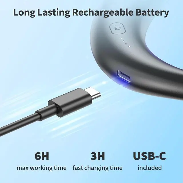 Hands-Free & WearableThe HF340 cooling neck fan is designed to free your hands anytime, anywhere. As long as you wear it, it will bring you a cooling experience and you can enjoy your wonderful life without being disturbed by neck coolers for hot weather. Good for working, exercising, traveling, hiking, camping, etc
