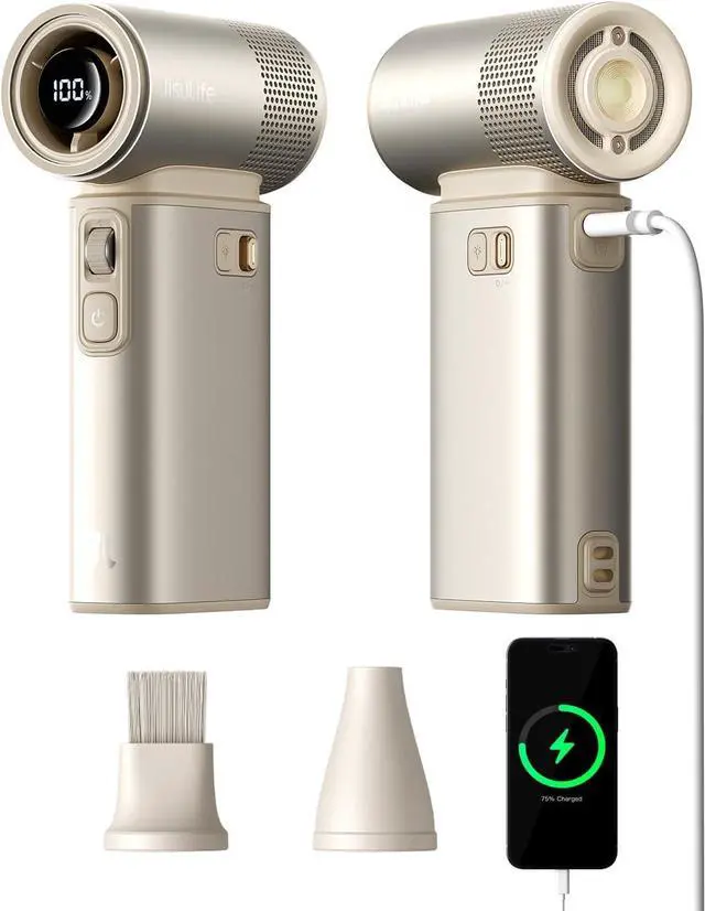 Portable and Versatile: Travel fan is compact and equipped with 2 magnetic air nozzles, can be used as a dust removal tool and inflation pump. Metal shell structure ensures durability, mini design makes it easy to carry, whether going cruise, beach, camping, climbing, or to concerts, it's the best choice