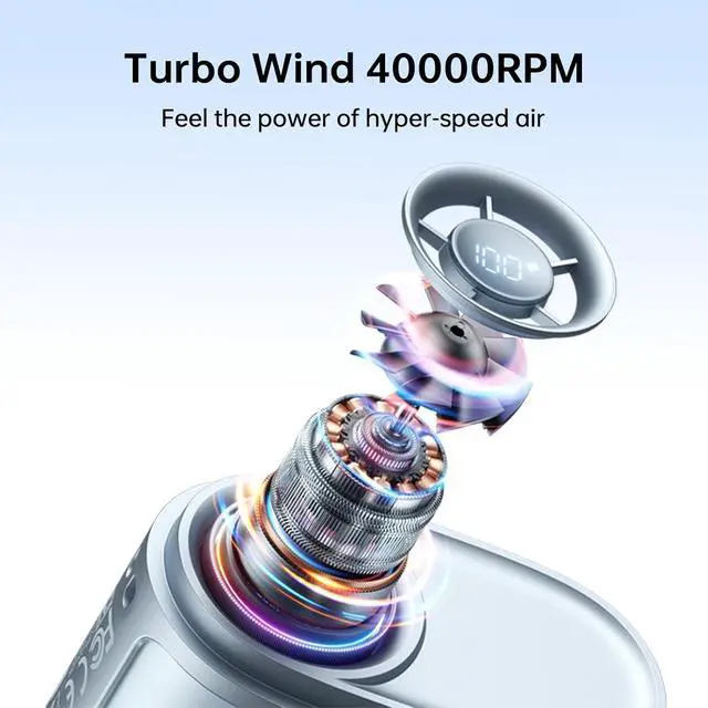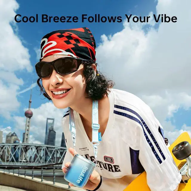 Smart LED - Instant Adjustment: Personal fan boasts smart LED displays, real-time speed (1-100) and battery %. Short press to power on/off; double-tap for battery check. Rotate the roller up and down to adjust the air volume instantlyno fumbling! Auto-switches to speed display after 5s, between modes for gym, commute, travel