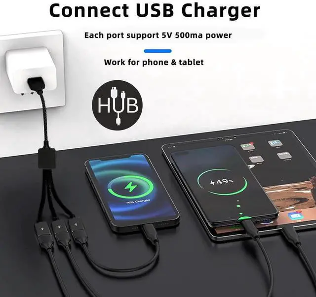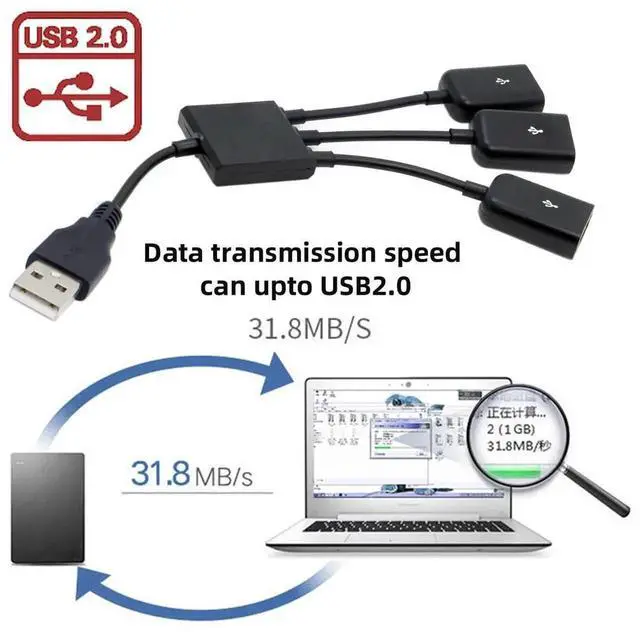 USB 2.0 to 3 Ports Hub Cable Bus Power 1 to 3 for Laptop Notebook PC Mouse Disk Printer