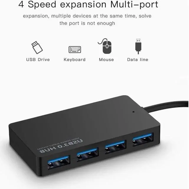 upports: High-Speed (5G Mbps), Full-speed (480Mbps) and Low-speed (12Mbps). Portable data hub supports most USB devices including hard drives docks, memory sticks, card readers, printers, mouse, keyboards, cameras. The ompliant with USB version is 1.1 / 2.0 / 3.01. Features 4-Port USB hub