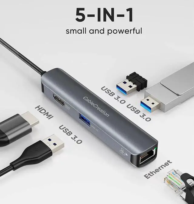 5Gbps Highspeed Data Transfer: The USB- C Data port and USB 3.0 port support high speed up to 5Gbps for transfering and backuping large files in seconds. TF and SD card slots support various memory card formats such as SD, SDHC, Micro SD, MMC, SDXC), and read SD / TF cards simultaneously. CableCreation USB C Dock meets all your needs