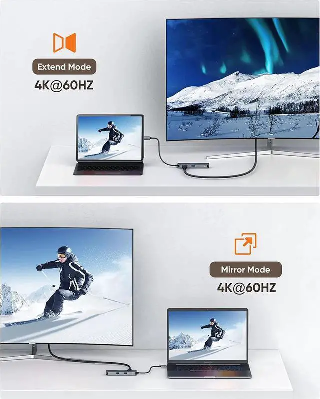 4K@60Hz UHD Visual Feast: USB C Hub HDMI port supports media display at resolutions up to 4K@60Hz. Mirror or extend your screen via the HDMI port and directly stream a clear video image to HDTV, monitor, and projector. Perfect for presentations, office meetings, gaming and movies.