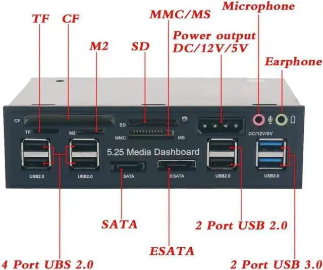 It has build-in USB 3.0 Port, e-SATA, 4 pin power port, audio, multi card reader, which can command your needs.
