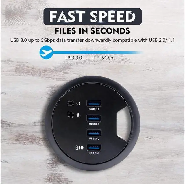 WHY CHOOSE WDX? We provide high-quality products with reasonable price. We have our own factory, professional engineer team and after-sale customer service team. WHY CHOOSE WDX USB 3.0 HUB? ü Dia( 3.62" + 3.07" )*H 0.94". ü 5V/2A power adapter, BC 1.2 Compliant. ü Fit inside 3.14" cavity. ü 2 x Dia 0.14" audio jacks to connect a headset. ü Compatible with Windows and MacOS Linux systems. ü 4 USB 3.0 ports, avoice jack, a headphone jack with 3 cables of USB 3.0 connector (L 29.53 \u201d), voice plug (L 29.53 \u201d) and trumpet plug (L 5.12 \u201d) includedü You can connect your mouse, keyboard, U Disk, USB, Printer, microphone, headphone, etc.