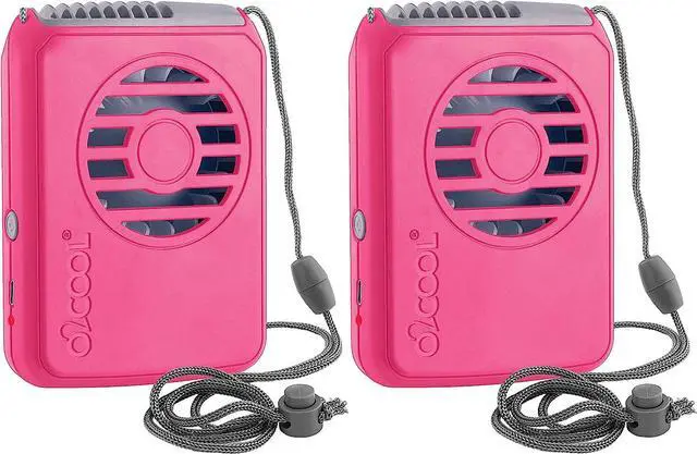 O2COOL Rechargeable Necklace Fan - Portable Hanging Neck Fan with Adjustable Lanyard - 3 Speed Vertical Air Flow Micro USB Charging Cable Included (Raspberry, 2)