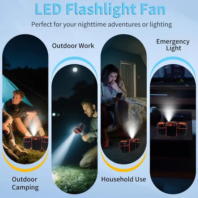 4-in-1 Multi-functional Waist Fan: This waist fan combines powerful cooling, LED lighting, SOS emergency signal and power supply into a compact device, making it perfect for both daily and outdoor use. Whether you need cooling, night lighting, emergency signals in emergencies, or device charging, this clip fan can meet your needs. It is the ideal companion for work and outdoor adventures, providing comprehensive support and peace of mind wherever you go