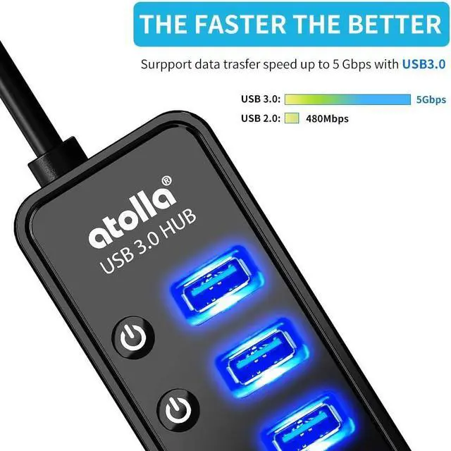 Simple Switch to Control- Equipped with individual on-off switches to control each USB port, atolla USB 3.0 hub saves the trouble of unplugging devices and help place them more rationally when you don't use them.