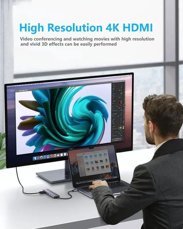 4K@30Hz USB C to HDMIMirror or extend the display of your phone/laptop/tablet with usb-c hub HDMI port and directly stream 4K UHD @ 30Hz or full HD 1080P video to HDTV, monitor or projector. Enjoy movies with your family on big screens or make a vivid presentation in a meeting.