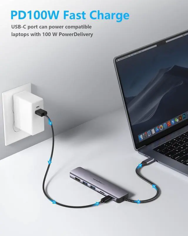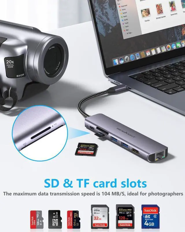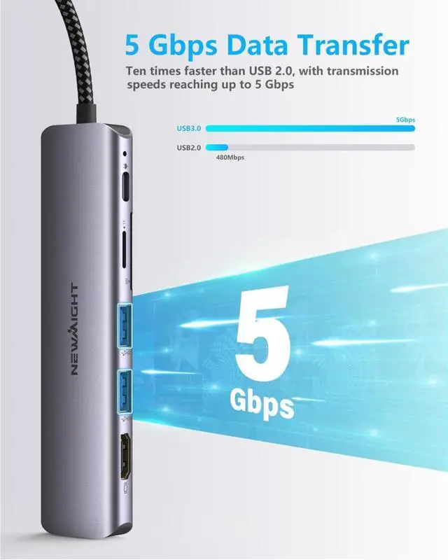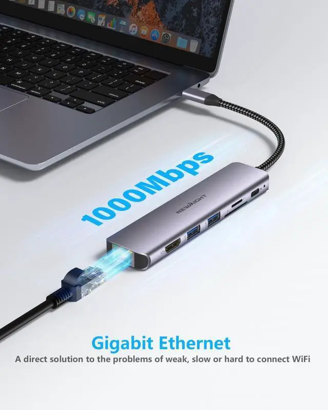 7 in 1 USB C HubEquipped with 4K @ 30Hz HDMI output, 100W PD charging, 1Gbps RJ45 Ethernet connection, two USB 3.0 ports, and SD/TF card reader, perfectly settle the problem of shortage port of your laptop. Newmight macbook adapter turns your device into a mini workstation, providing you a sleek workspace. Plug and Play, No Software, drivers required.