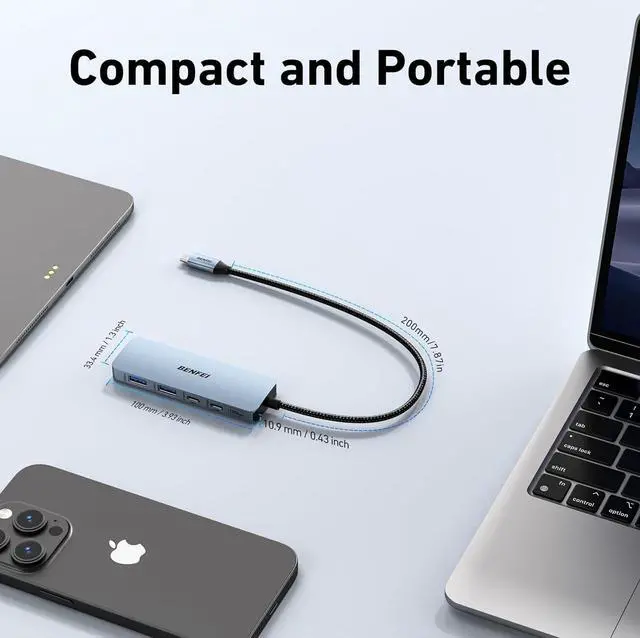 Portable and powerful USB-C HUB: BENFEI USB Type-C HUB, with super-soft and knot-free silicone woven design cable, meets most mobile office needs. Compact, lightweight, stylish, and powerful portable USB C Hub equipped with 2 x USB-A and 2 x USB-C ports. 18-month warranty, 24-hour response, to ensure you feel at ease when using our product.