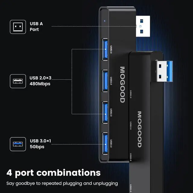 USB Splitter for Laptop MOGOOD USB Splitter USB Hub 3.0 USB Hub for Laptop Multiport Adapter for Laptop USB Port Expander USB Data Hub Splitter for Laptop,PC,MacBook,Mac Pro,Mac Mini,iMac,Surface Pro